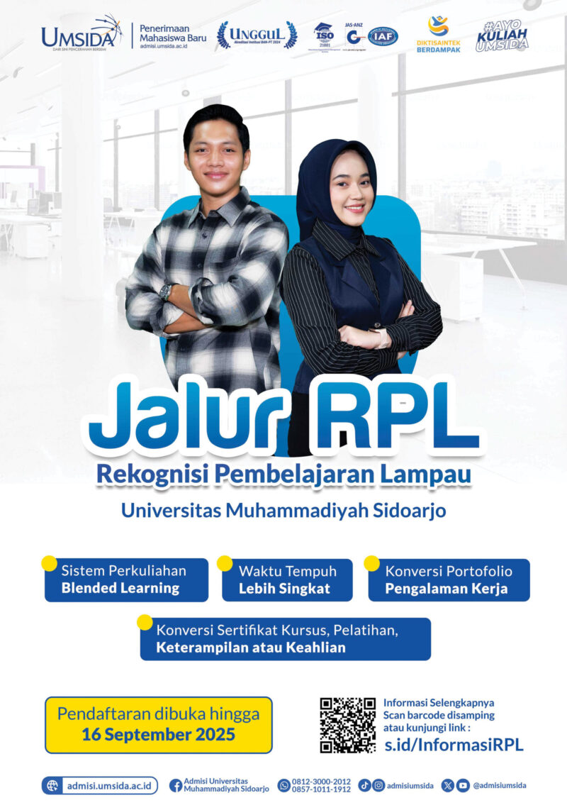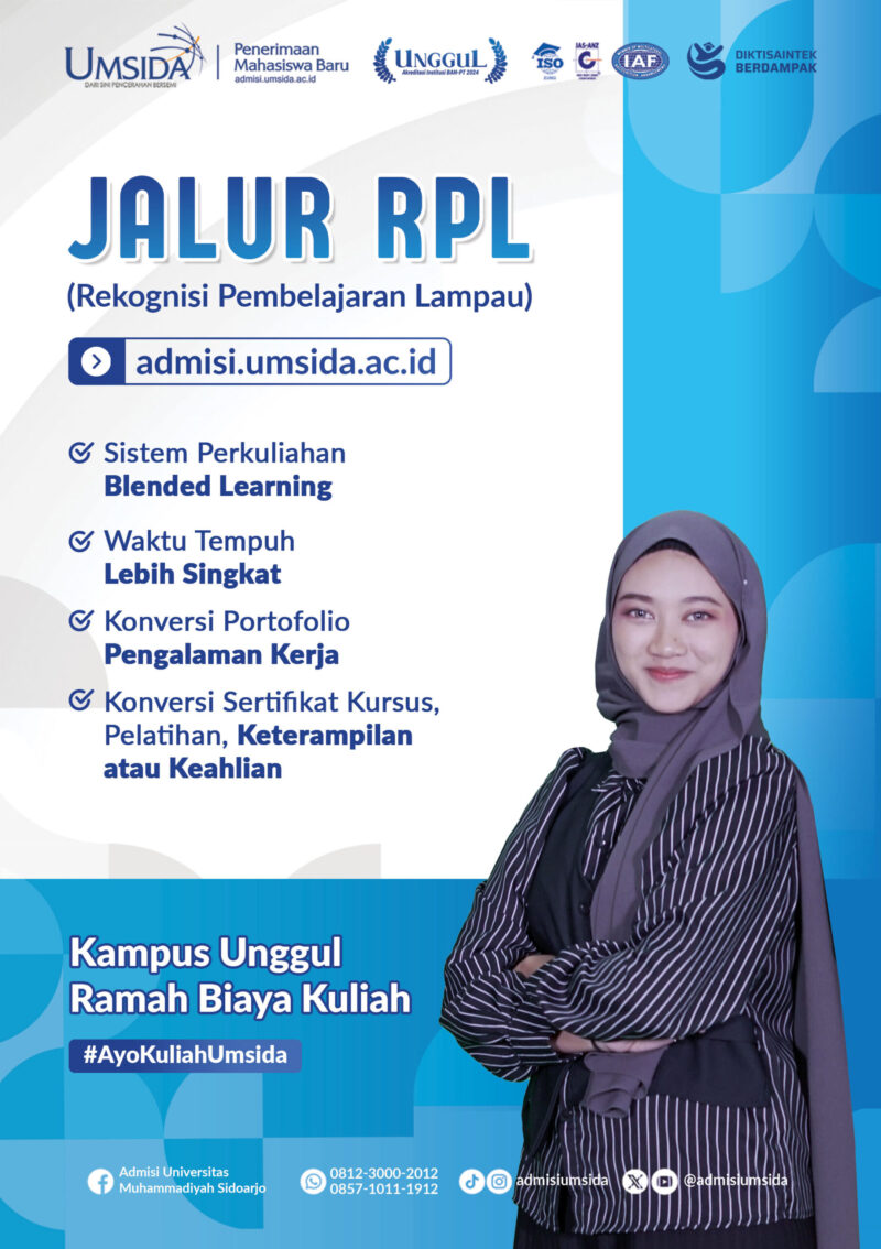 Penyelenggaraan RPL di Umsida ini merupakan bagian dari usaha pemerintah dalam memperluas akses kepada masyarakat untuk menempuh pendidikan di Perguruan Tinggi dalam rangka pembelajaran sepanjang hayat. Program studi yang menyelenggaraan adalah sebagaimana terlampir.